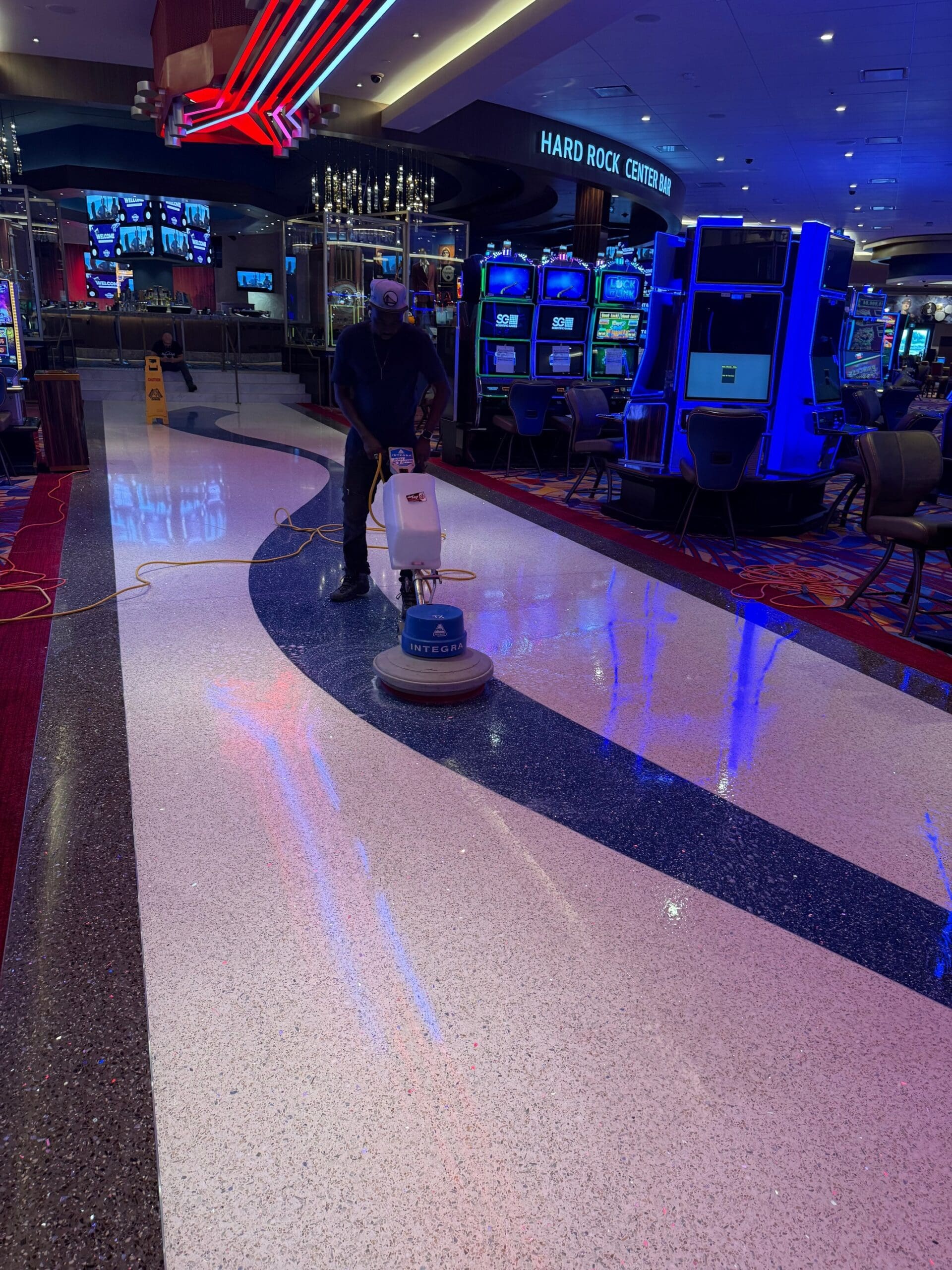 We also handled high dusting, window cleaning, kitchen detailing, carpet cleaning, and floor buffing—ensuring every space was immaculate and guest-ready. As Hard Rock’s internal crews arrived, Jani-King continued to support opening-day operations with event cleaning and ongoing washroom care, helping the venue shine for its debut.